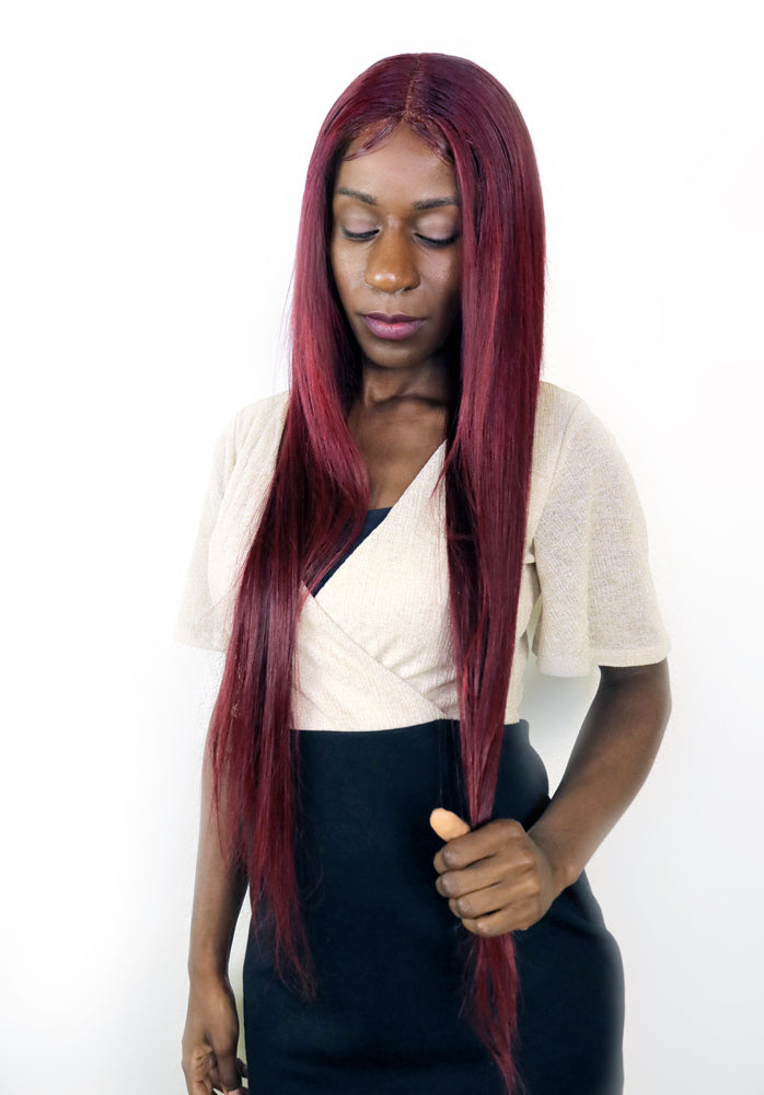 Perruque Rousse au Carré avec Frange et Lace Frontale HD Cheveux Brésiliens Purs - Jodie
