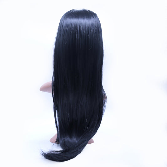 Perruque Lisse Noire en Fibre Synthétique avec Lace Frontale HD