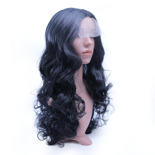 Perruque Longue Bouclée Noire en Fibre Synthétique avec Lace Frontale HD