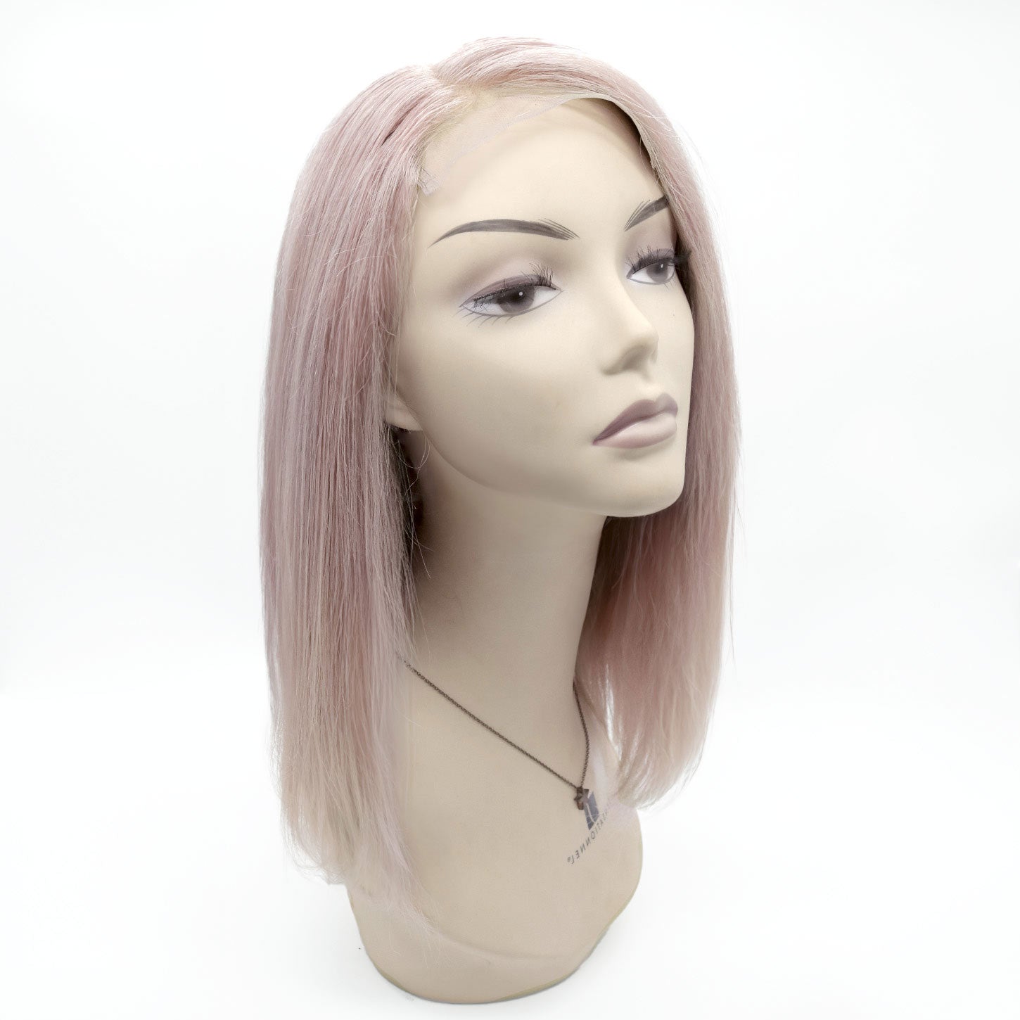 Perruque Cheveux Remy Lisses Roses au Carré, Noeud Blanchi & Lace HD - Cerise